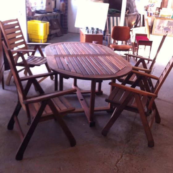 Nyrenoveret colibri teak havemøbel sæt 4 stole og bord med integreret tillægsplade