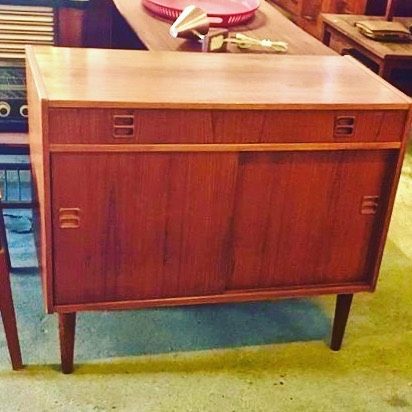 Lille teak skænk med skuffe, i butikken nu.